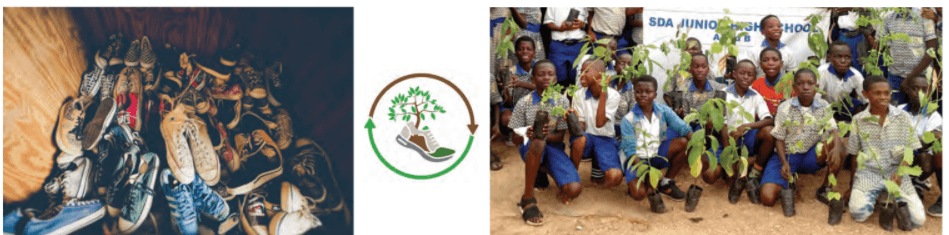 The MORE Foundation Group is a US non-profit organization that collects gently used athletic shoes for re-use and for funding reforestation projects in needy regions. MORE provides basic supplies, tools, seeds, grow bags, compost, saplings, and agroforestry training. Essentially, MORE implements self-sustaining tree farming.